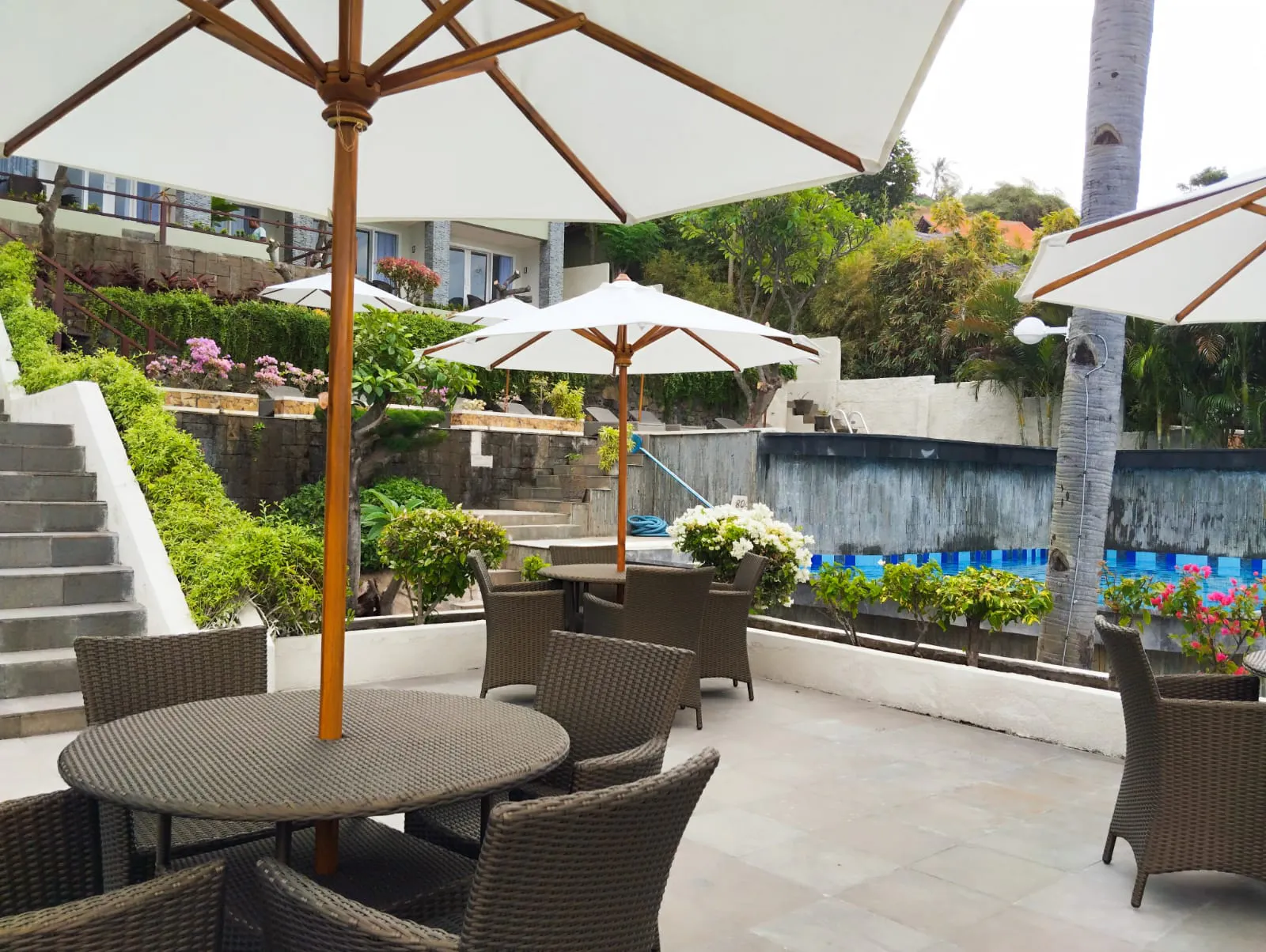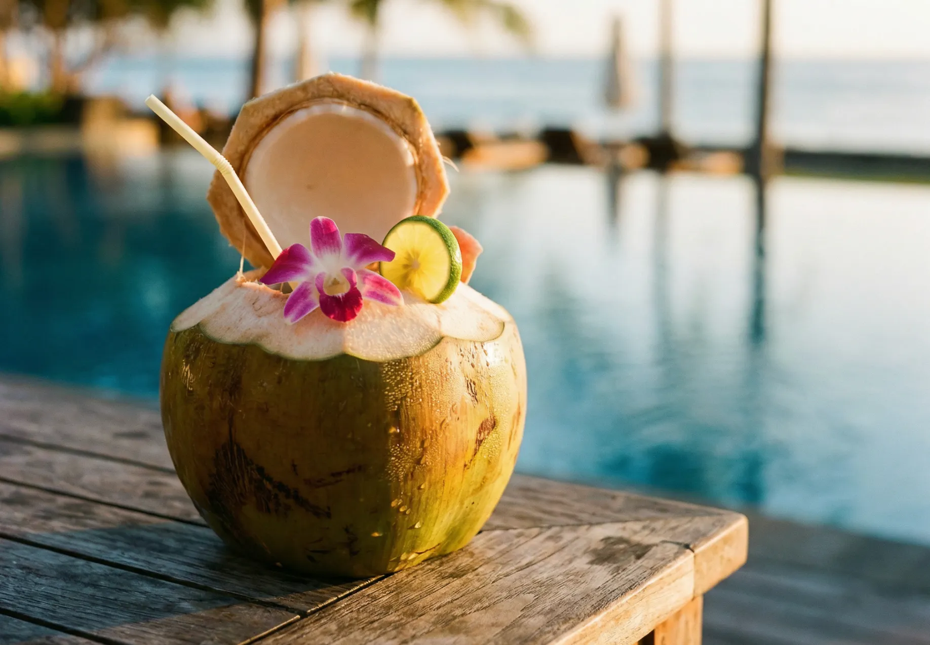 Sip refreshing cocktails at our poolside bar or enjoy a fresh, quality drink with a view. Our dining area is designed for long, relaxed gatherings with family and friends.
