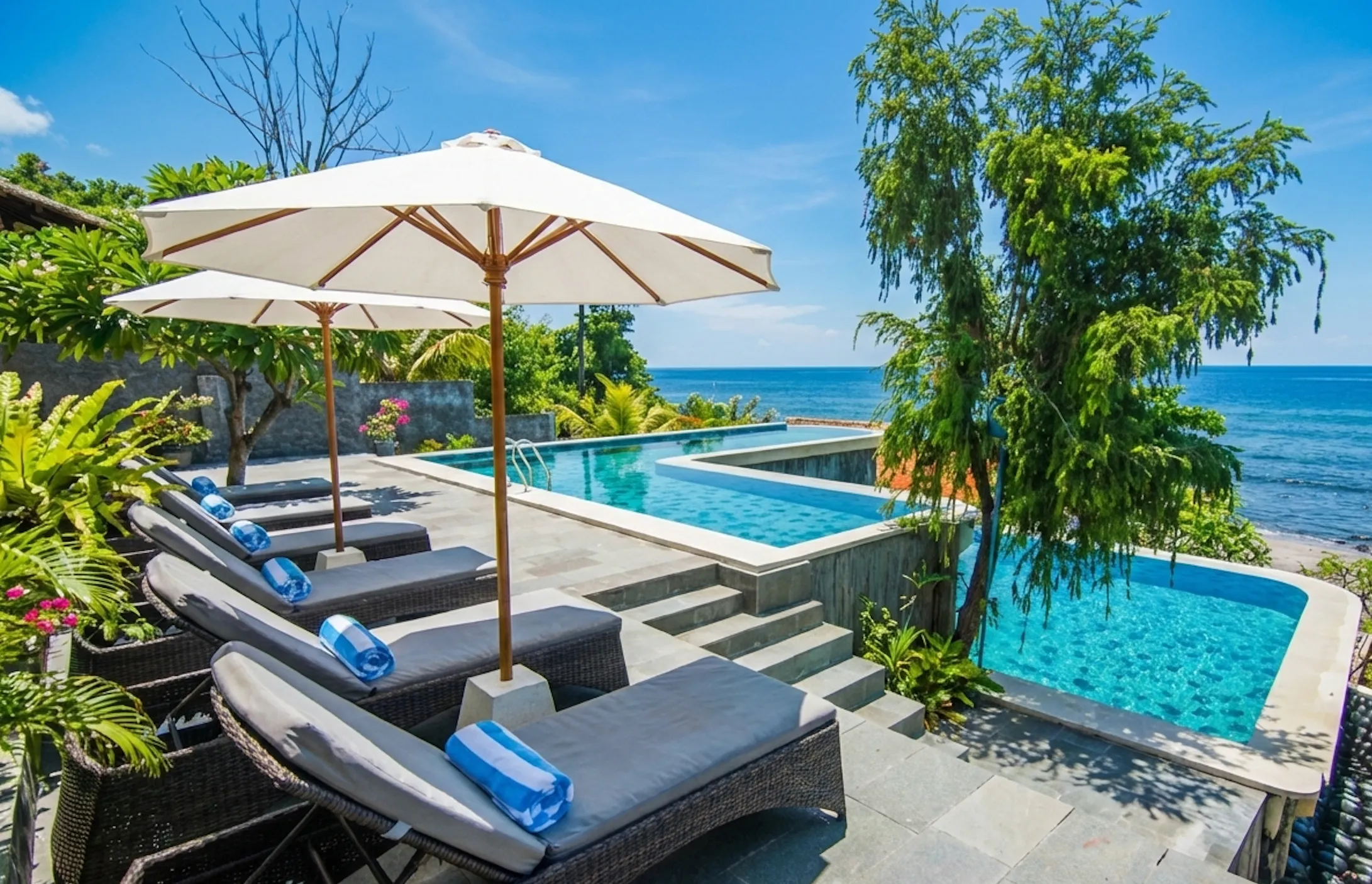 Relax in our large infinity pool that blends seamlessly into the horizon. It’s the perfect spot to cool off while taking in panoramic views of the sea.